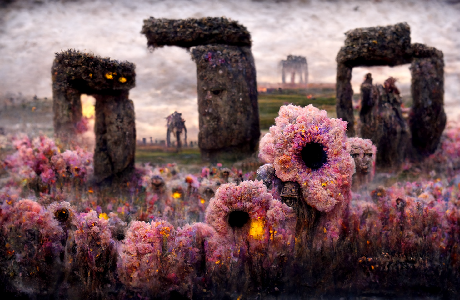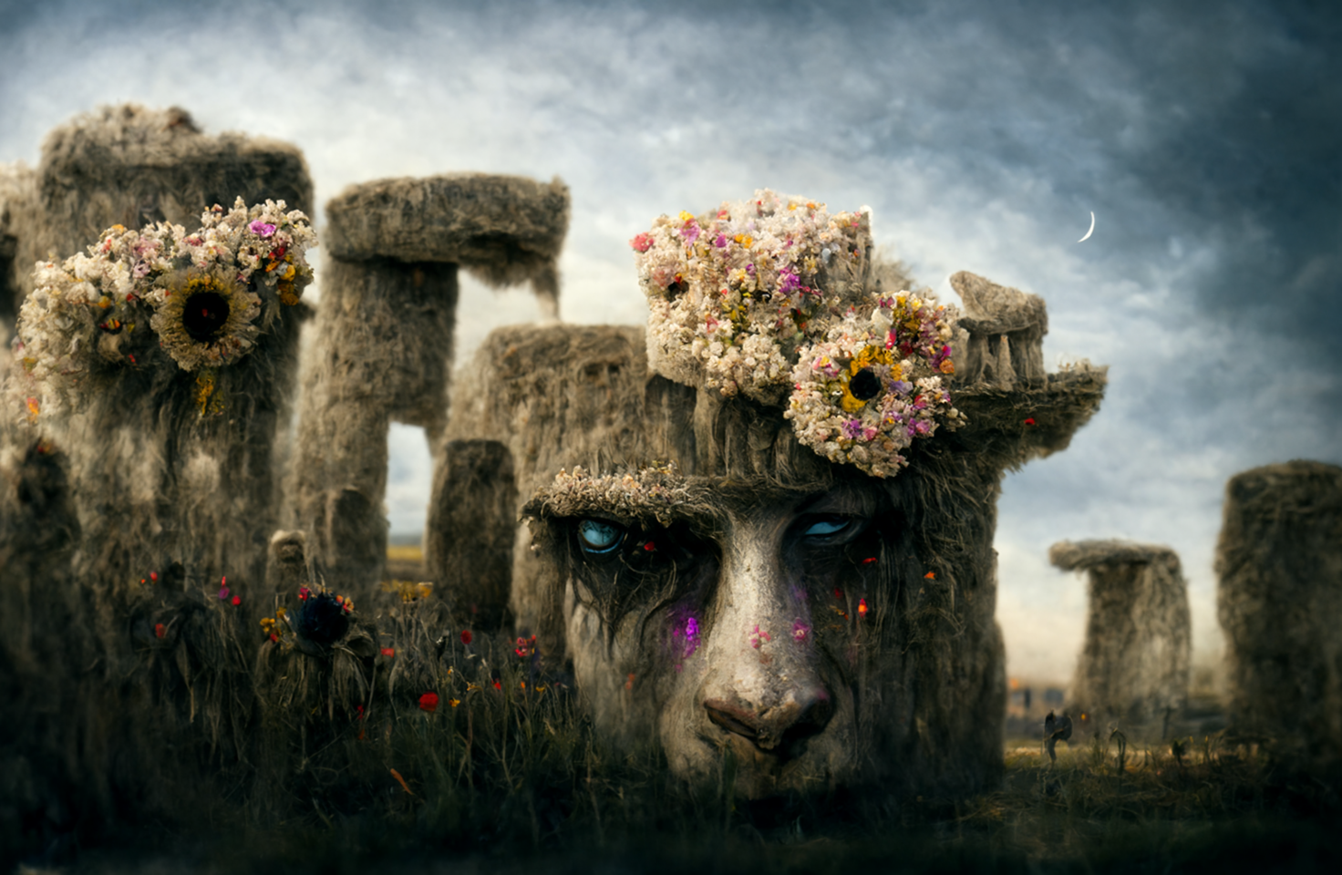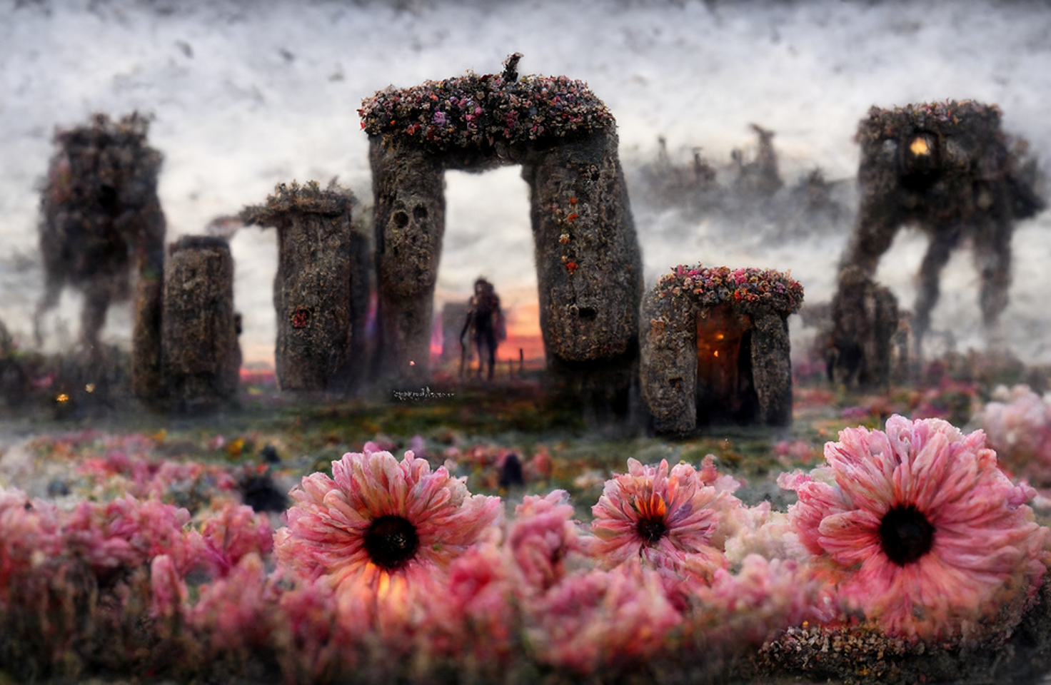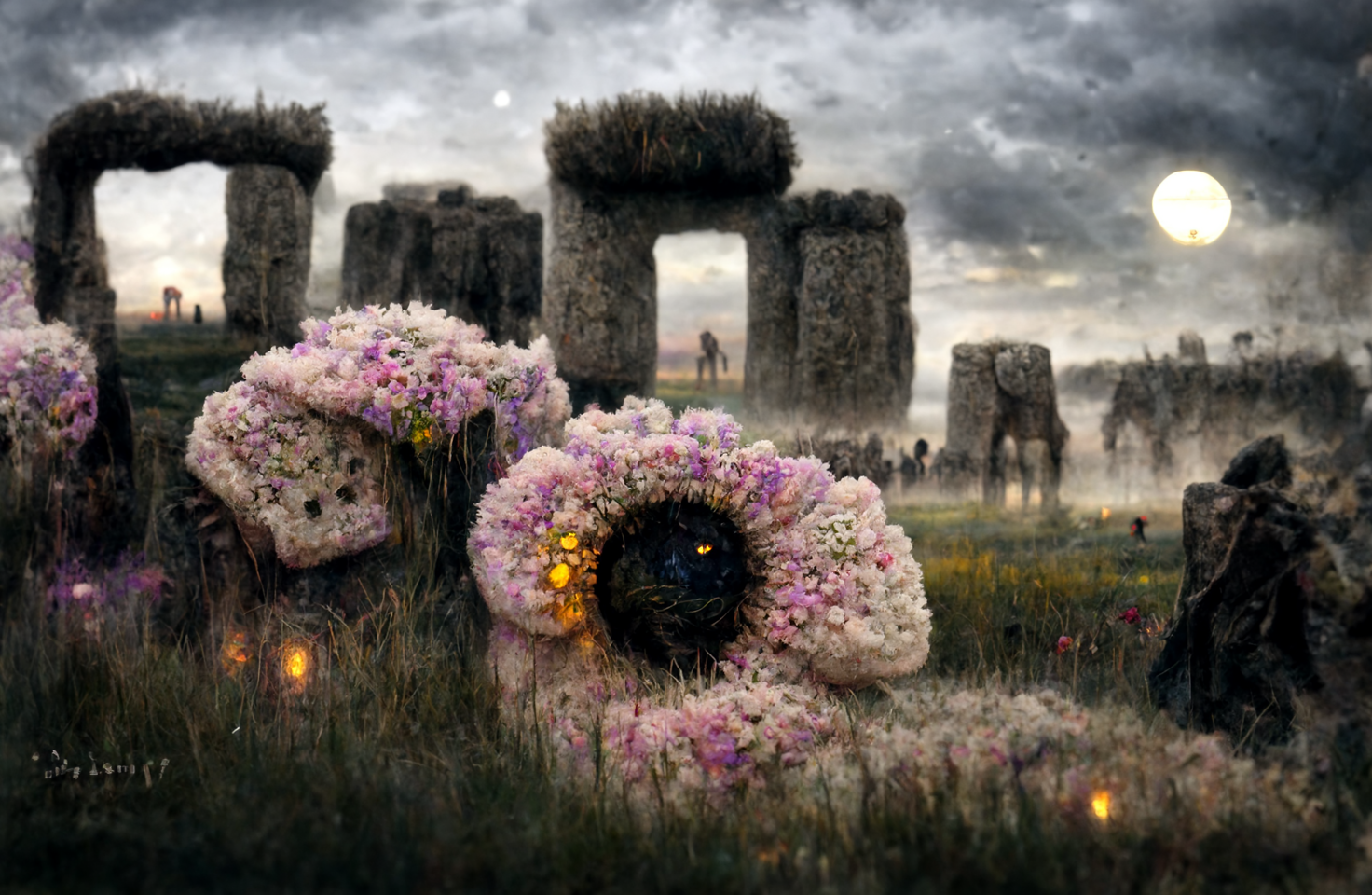 stonehenge covered in flowers